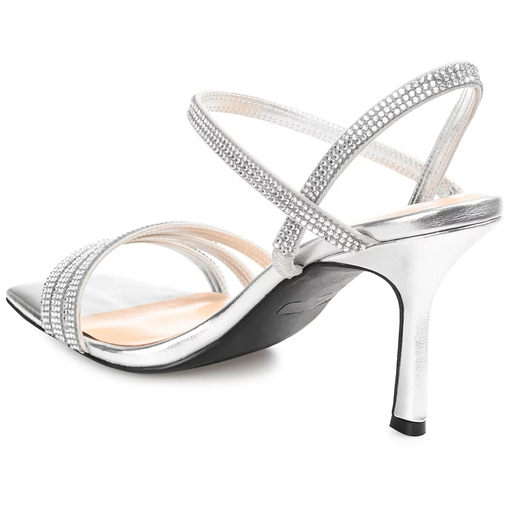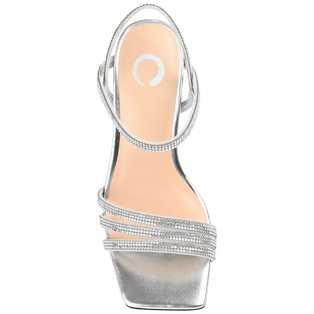 Make any outfit shine with these Journee Collection Coraa women’s rhinestone high heel sandals.