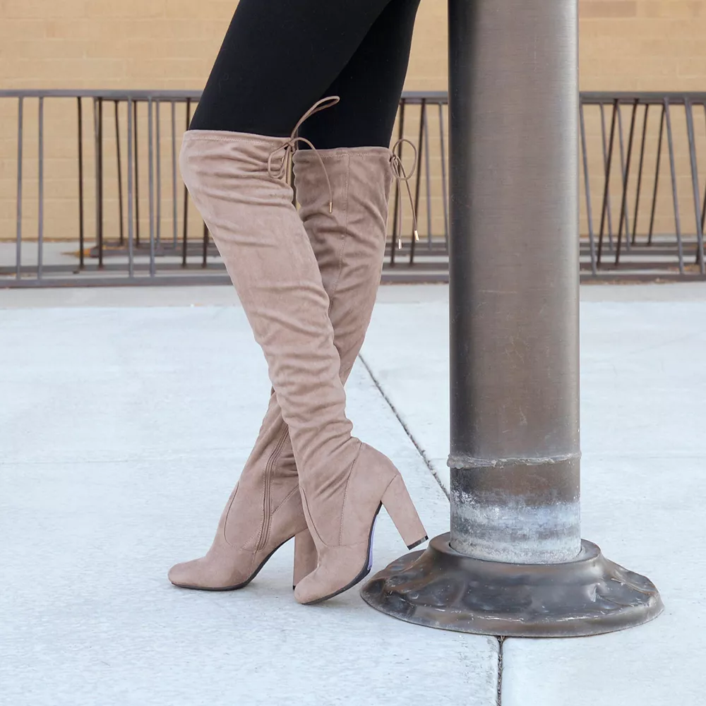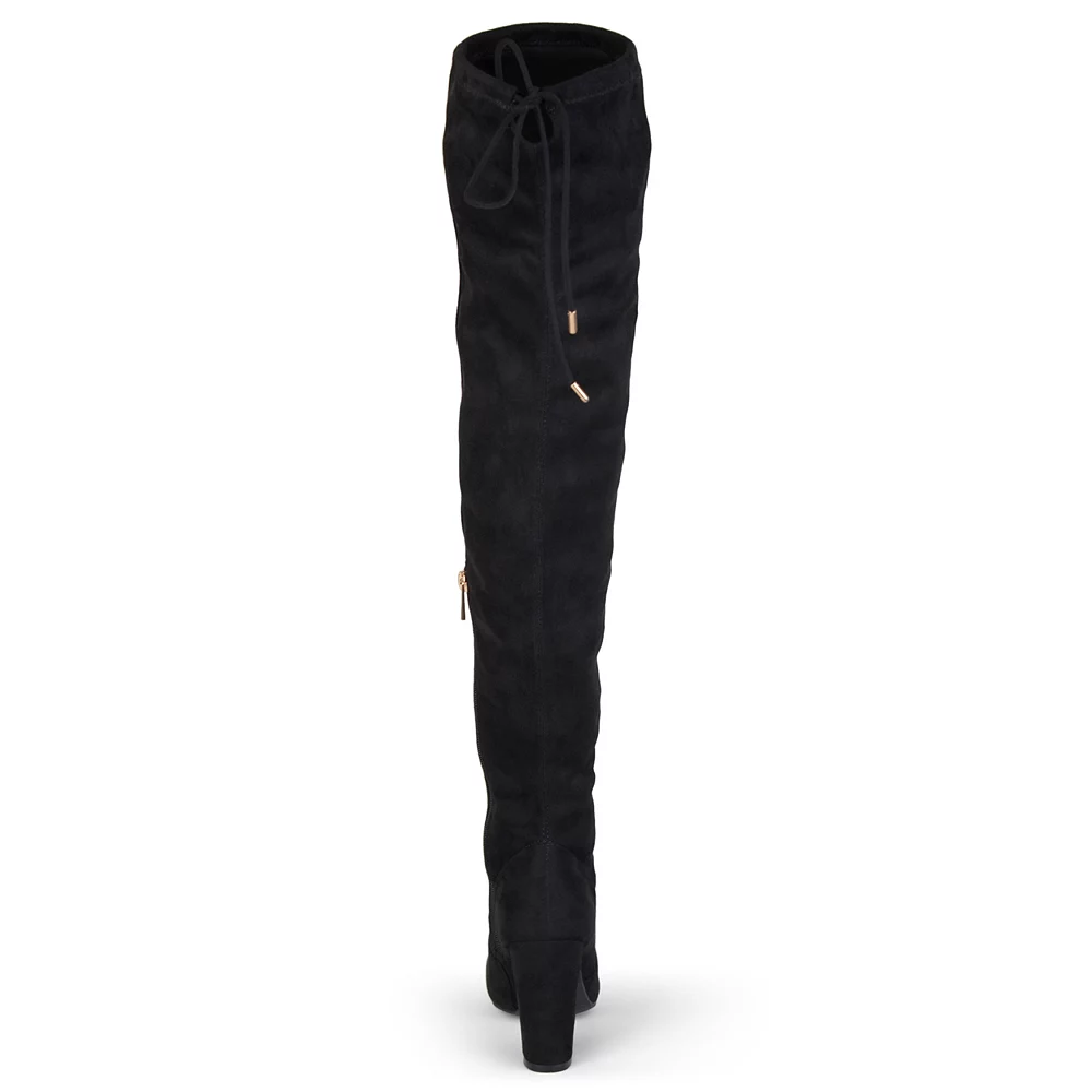 Adorn your legs in the sleek thigh-high design of these Maya boots from Journee Collection.