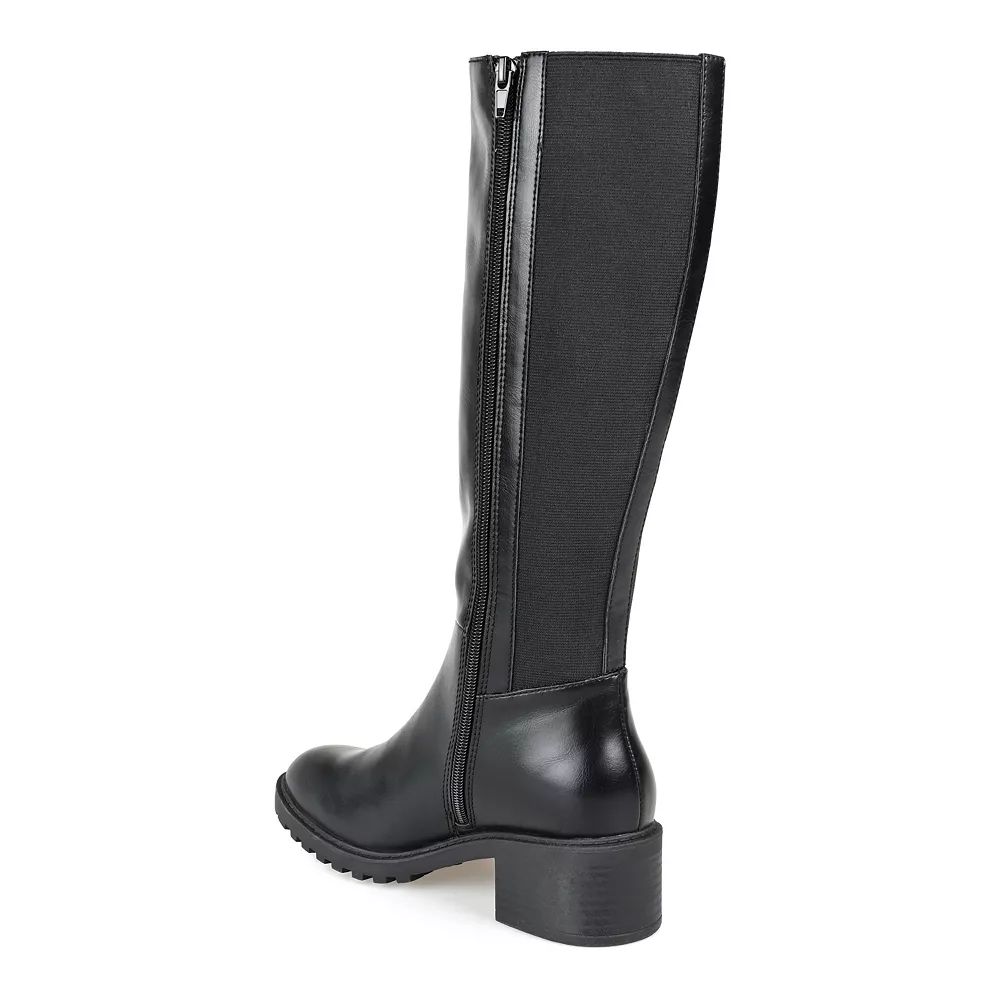 A lug outsole and block heel add some serious style to these Journee Collection Morgaan Tru Comfort Foam women’s knee high boots.